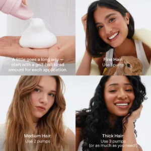 Deja el cabello con sensación de recién lavado, sin enjuague